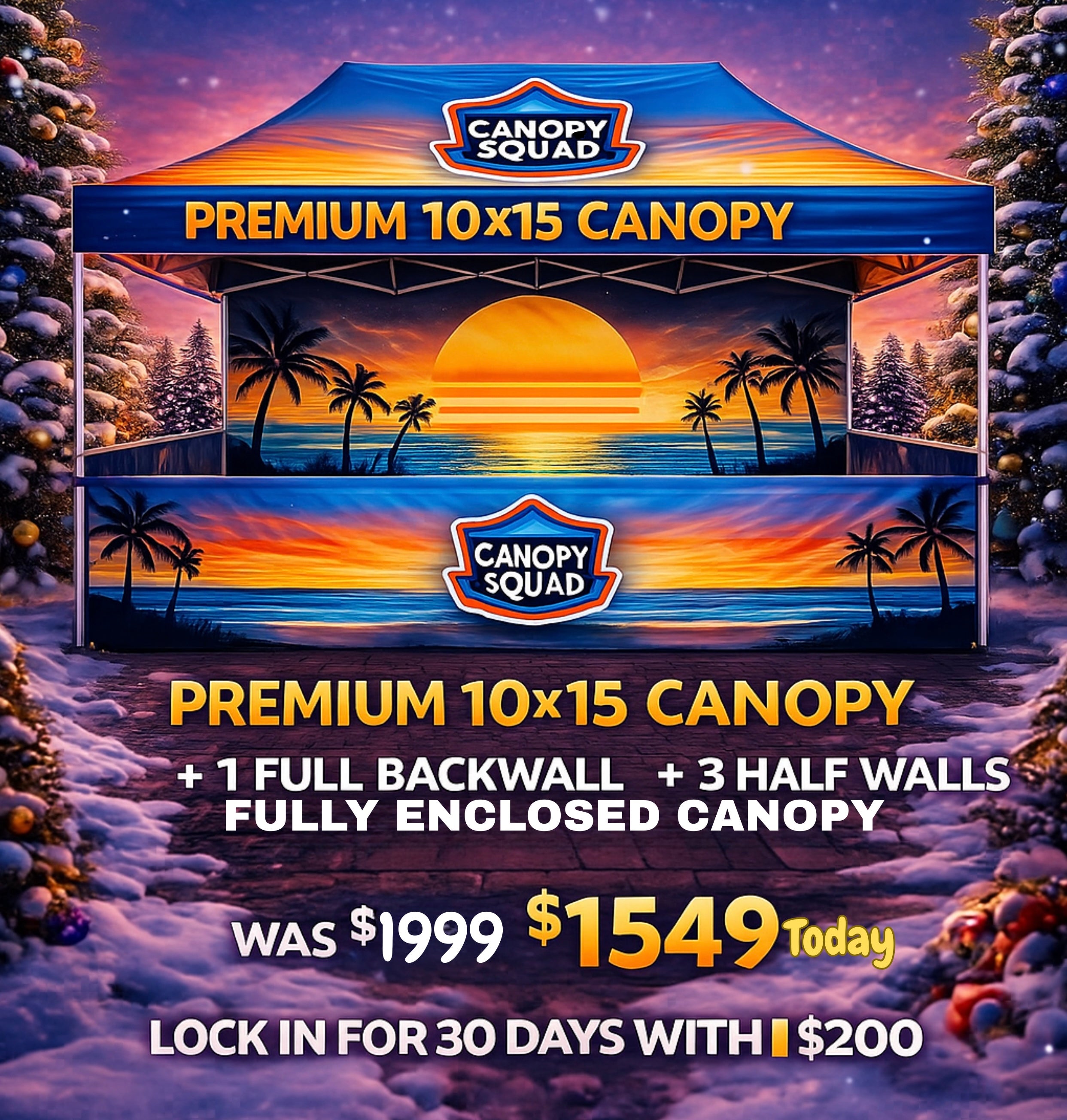 10x15 Premium Canopy with 3 Full Walls & 1 Half Wall